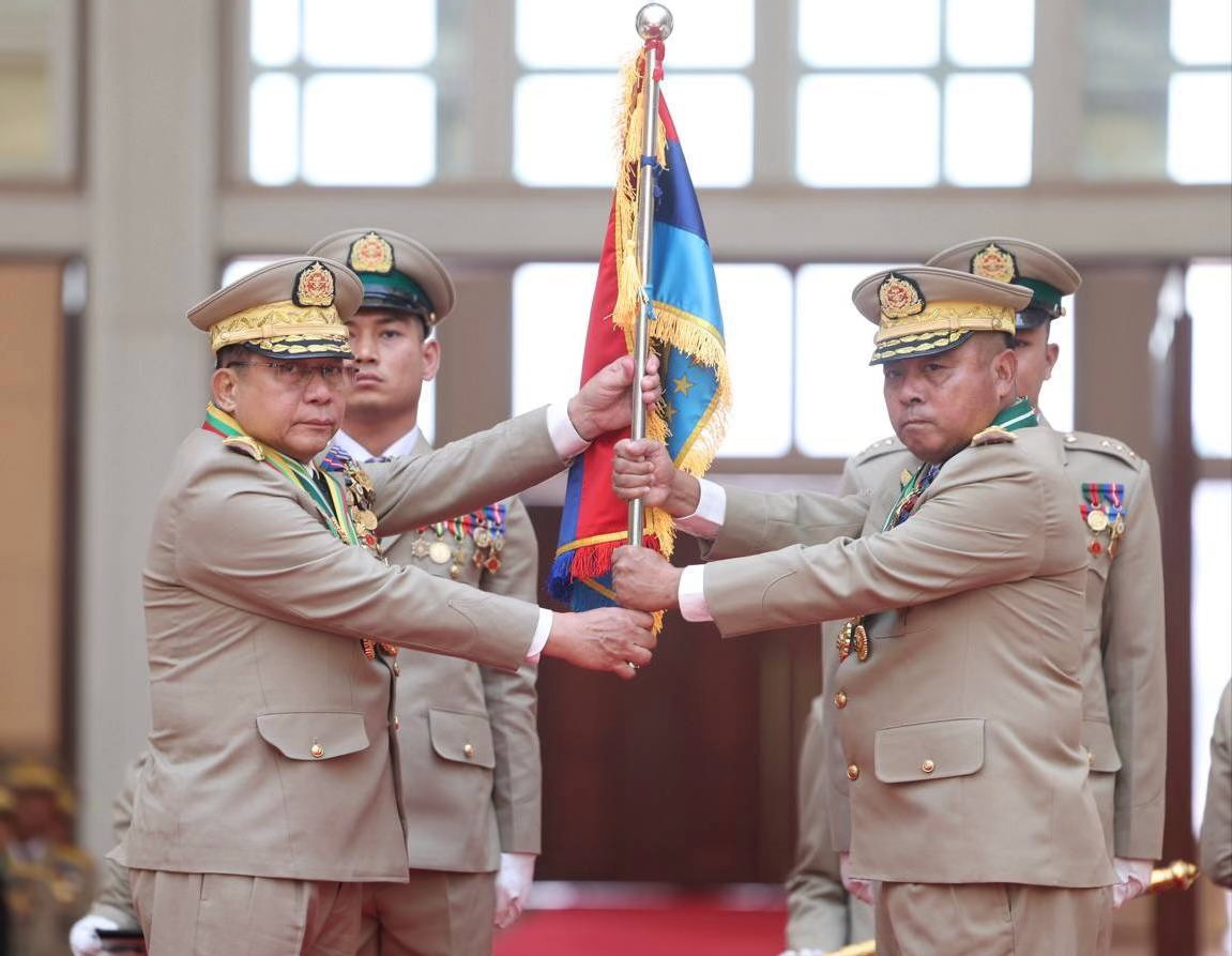 The handover ceremony took place this morning at the military headquarters in Naypyidaw. During the event, Min Aung Hlaing handed over ceremonial items, including the golden sword and the flag and the seal of the military headquarters, formally entrusting Ye Win Oo with the responsibilities of Commander-in-Chief.