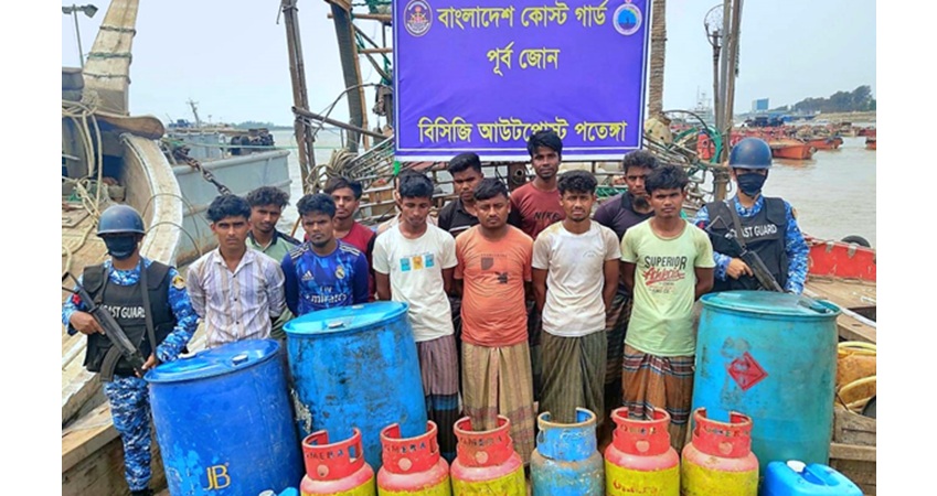 The Bangladesh Coast Guard arrested 12 smugglers, including 8 Rohingyas, at Patenga in Chattogram on Saturday for attempting to smuggle diesel to Myanmar.